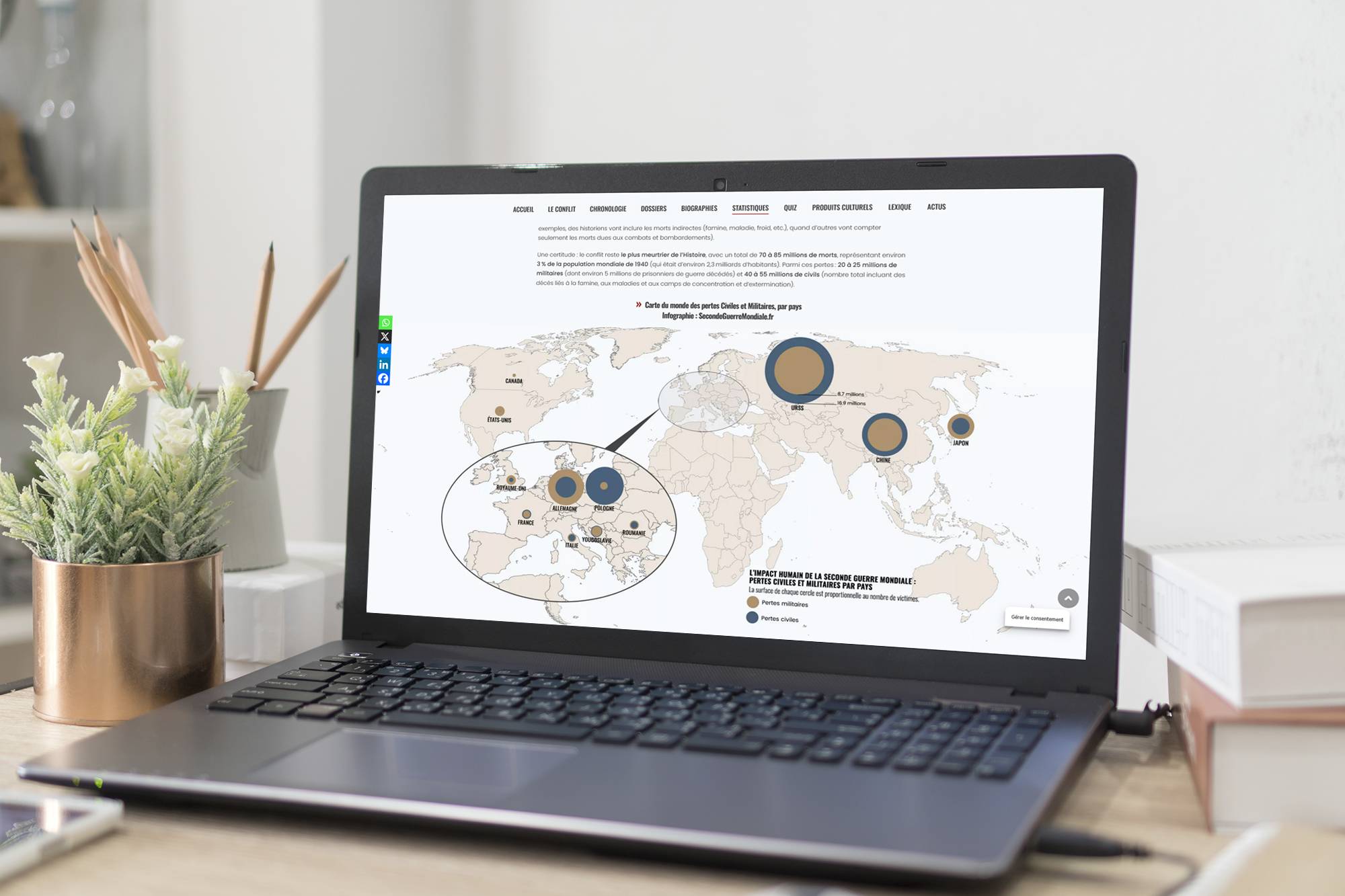 L’aspect SEO a été central dès la conception : un site sur la Seconde Guerre mondiale est en concurrence avec des ressources institutionnelles importantes. La structure des URLs, le balisage sémantique, les méta-données et le maillage interne entre les contenus ont été soigneusement pensés pour maximiser la visibilité organique sur des requêtes très concurrentielles.