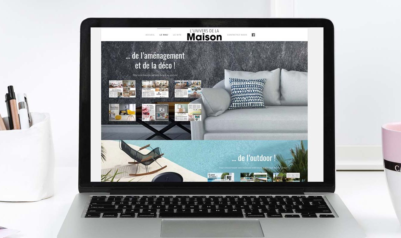 Nous avons donc procédé à la création d'un site "B to B" (professionnel à destination de professionnels), construit comme un "Media Kit" afin de présenter de manière graphique les contenus du magazine déco publié par l'éditeur, mais aussi les cibles du magazine ainsi que les offres commerciales proposées par l'entreprise.